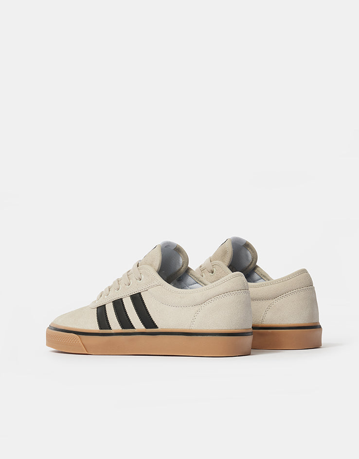 The Adi-Ease in Crystal White/Core Black/Gum are an iconic shoe from adidas that have been adapted for skateboarding. A beautifully simple, low-top silhouette that features the quintessential Adidas tri-stripe and a durable Suede upper.