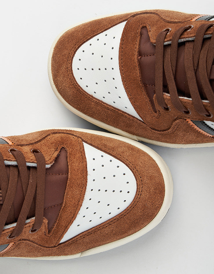 The Forum 84 is a classic basketball silhouette from Adidas, updated and adopted by skateboarding. The Crystal White/Core Black/Rustic Orange colourway features leather and suede uppers, layered in all the high wear areas. Whilst these are much chunkier than most shoes being released, the chunky silhouette is complemented by a thin cup sole offering great board feel. The sole is made from a tacky gum rubber in a circle pattern to provide a constant, consistent grip when skating.