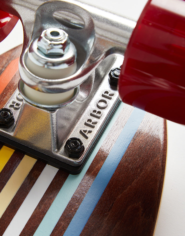 The Arbor Bogart Micron Cruiser Skateboard comes fully set up and ready to hit the streets. The deck comes in at 6.75" wide and features Arbor branding down the length of the board on a wood veneer background. It comes fully equipped with Arbor Branded HBP trucks, Bogart wheels from Arbor's Easyrider series and ABEC 7 bearings with spacers, making this micro-cruiser ideal to take anywhere.