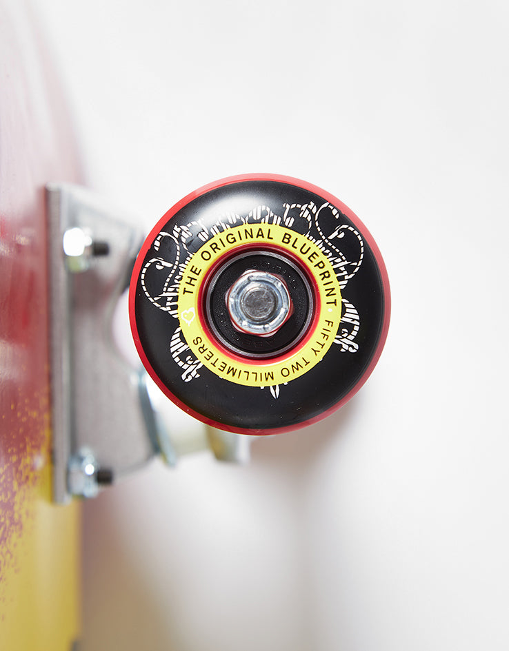 The Spray Heart complete for Blueprint is a great option for someone looking for their first board or just wanting to upgrade from their current setup. This board features raw trucks, Blueprint wheels and solid Abec 5 bearings.