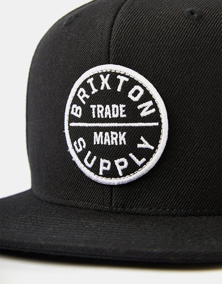 The Brixton Oath III Snapback Cap in Black is a cut-and-sew cap that features a six-panel construction, an embroidered branding patch on the centre front, an adjustable snap closure at the rear and comes finished with a structured crown and a comfortable flat brim.
