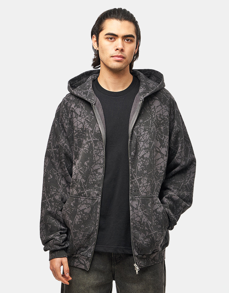 Butter Goods Woods Camo Zip-Thru Hoodie - Washed Black