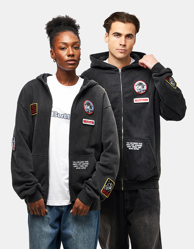 Butter Goods x Peanuts Patches Zip-Thru Hoodie - Washed Black