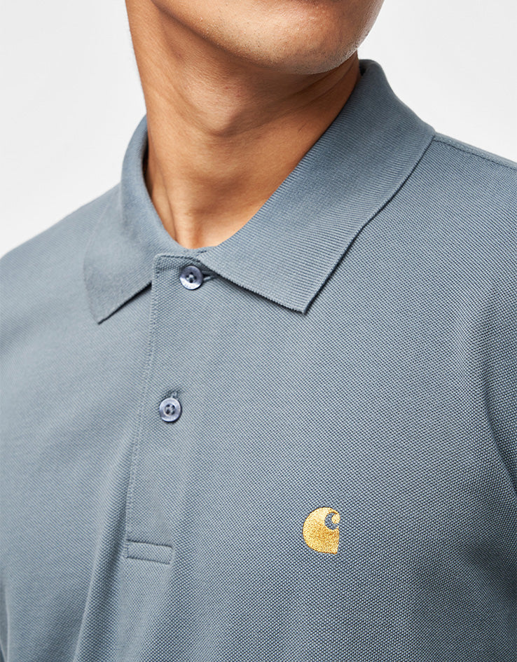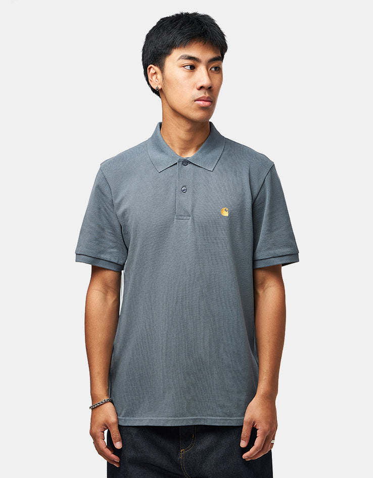 Carhartt WIP S/S Chase Pique Polo - Cozy Blue/Gold