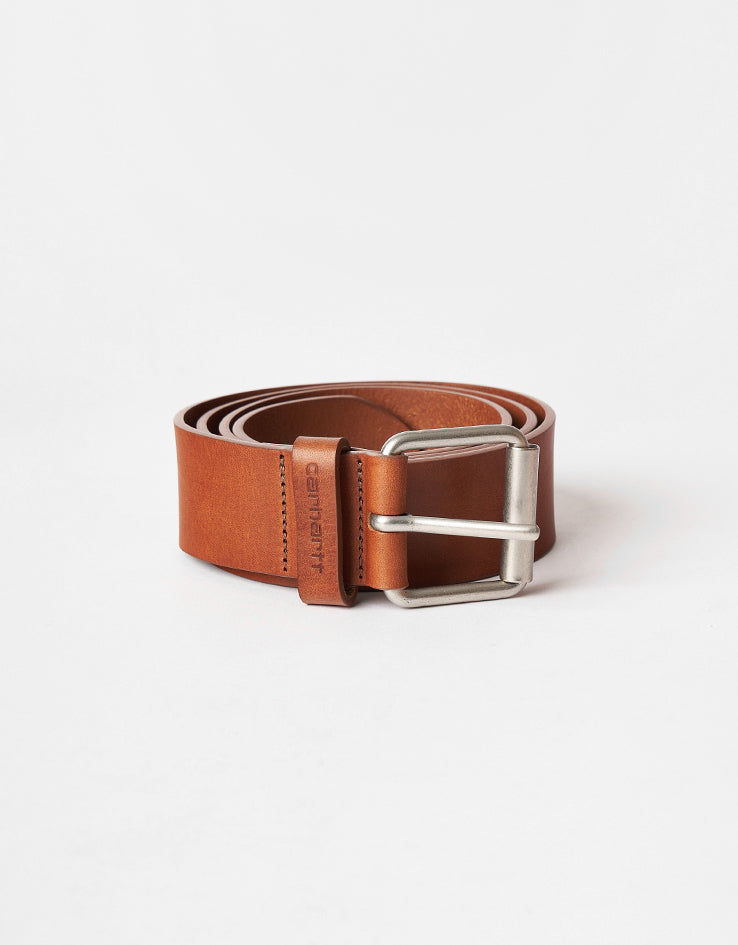Carhartt WIP Script Leather Belt - Cognac/Silver