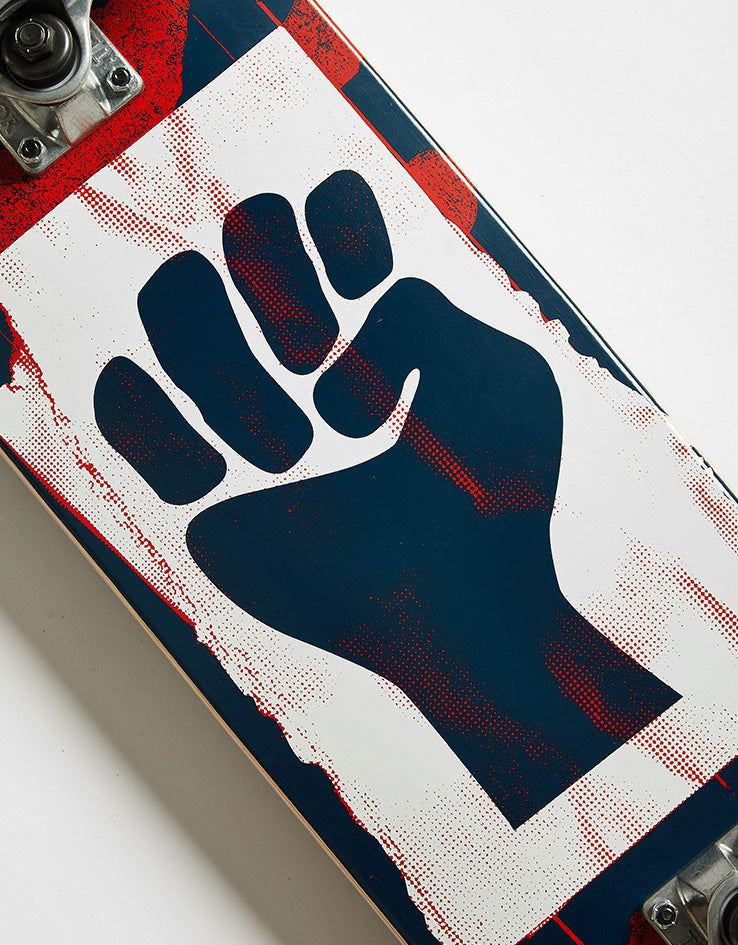 The Cliché Viva Cliché BR Complete Skateboard comes set up and ready to skate so you waste no time getting rolling. The 7.75" deck featuring Cliché's classic branding on a blue background covered by a protesting fist comes fully equipped with Tensor Raw Trucks and Cliché wheels, making it an ideal board for those just starting out or someone looking to upgrade their current setup.