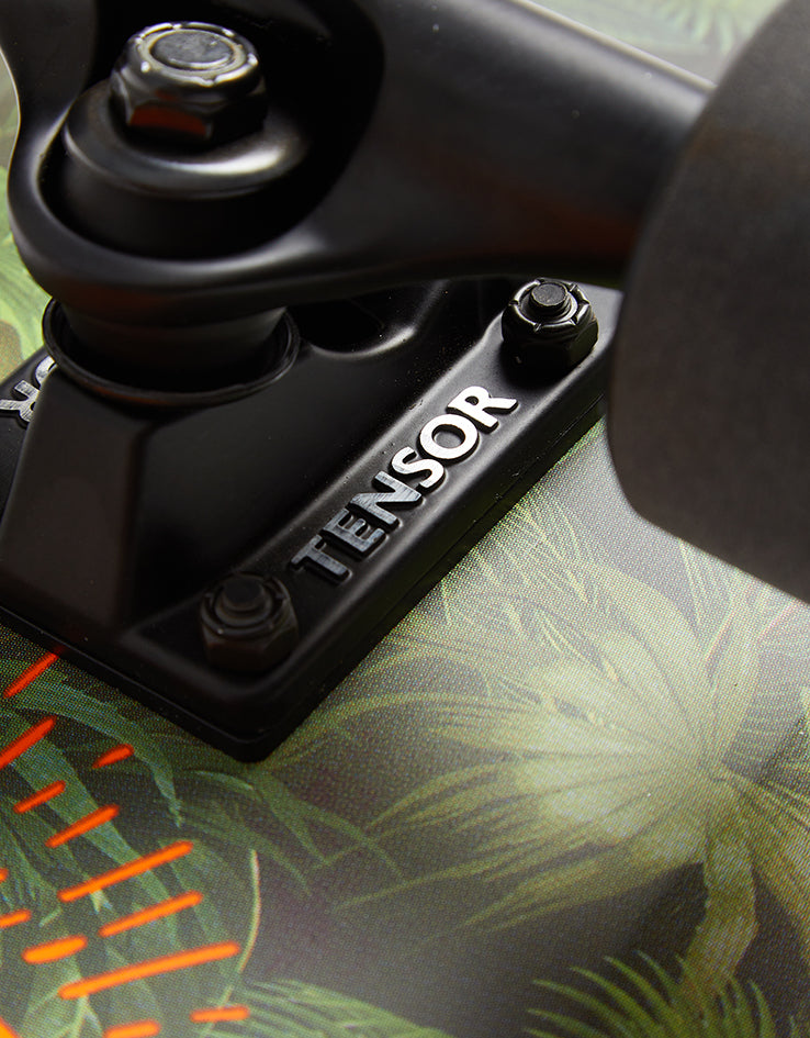 The Dusters Beach Jungle Cruiser Skateboard comes fully set up and ready to cruise. The deck comes in at 8" wide, the deck comes fully equipped with Tensor Trucks and 60mm Wheels, making this the ideal for anyone looking for a solid cruiser.