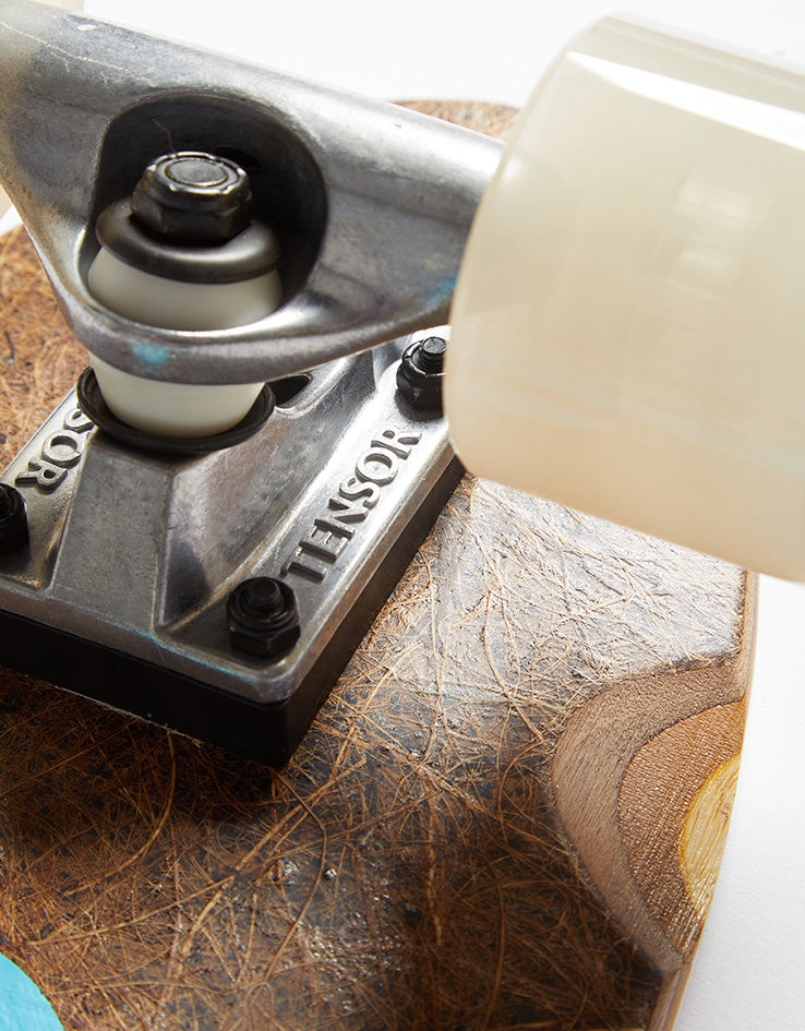 The Globe Blazer Sky Cruiser offers a variety of eye-catching colour dipped decks in a compact wooden cruiser, with contrast coloured grip tape, and laser etched logos. The Blazer is certainly inspired by the Bantam and thereby uses all the same components, which makes customization on this Teak/Monsters model a piece of cake.