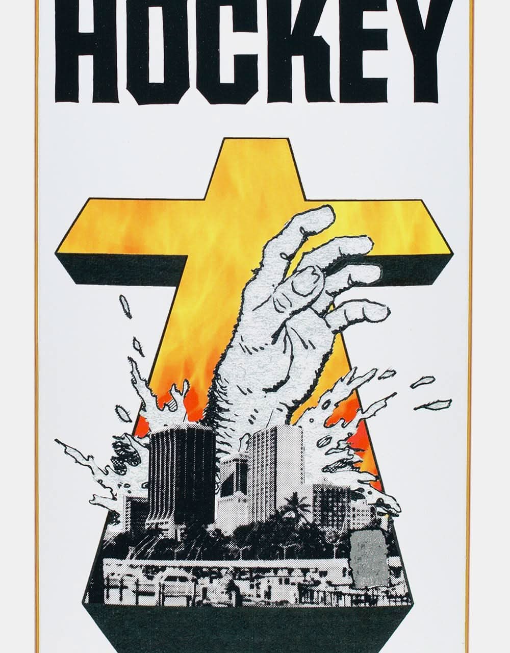 The Drowning board for John Fitzgerald pictures a cross with a city and hand emerging in the centre of the board with Hockey branding above in bold lettering.