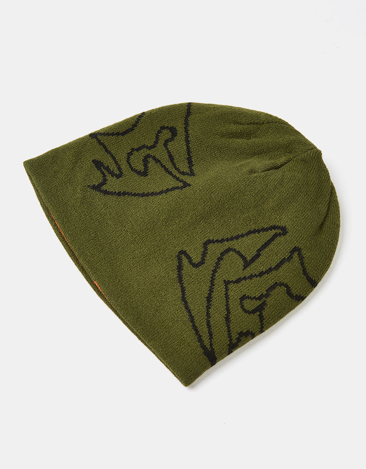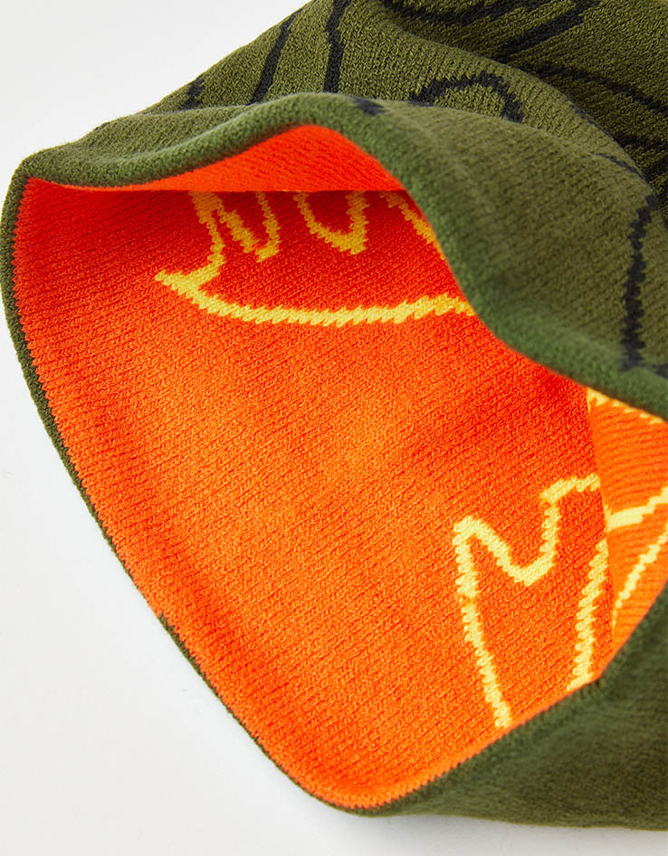 ICHPIG Razor Reversible Skull Beanie - Olive/Orange