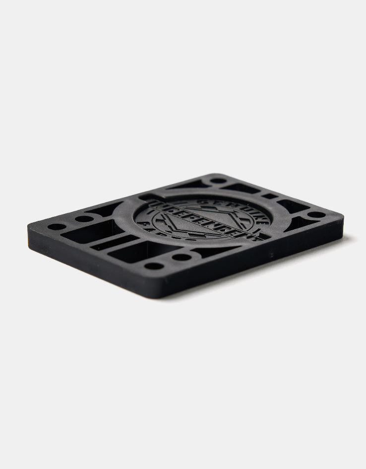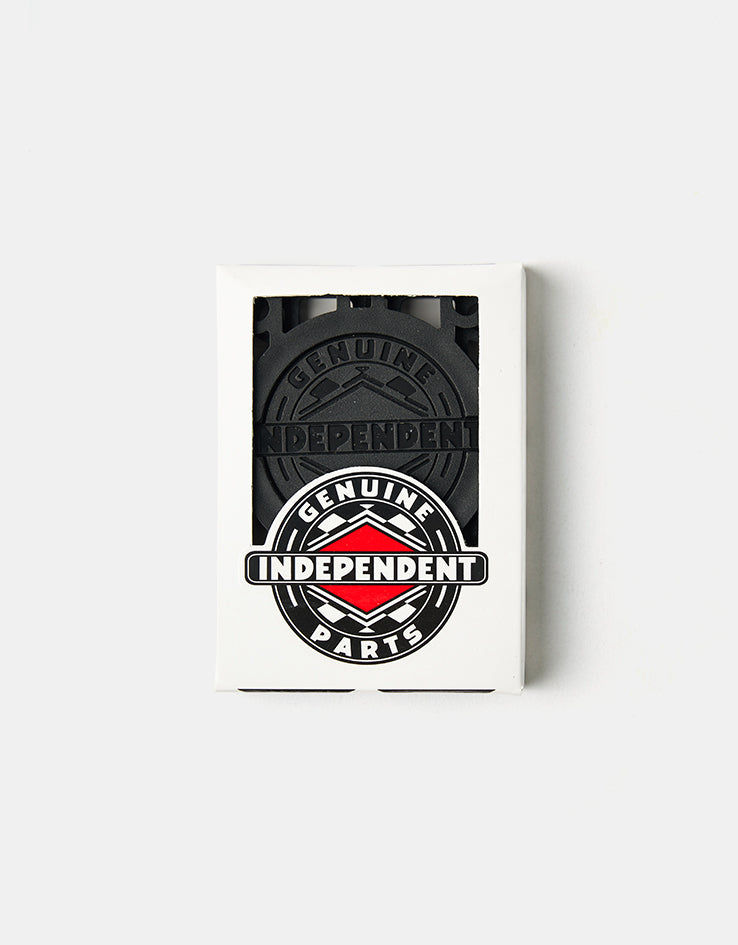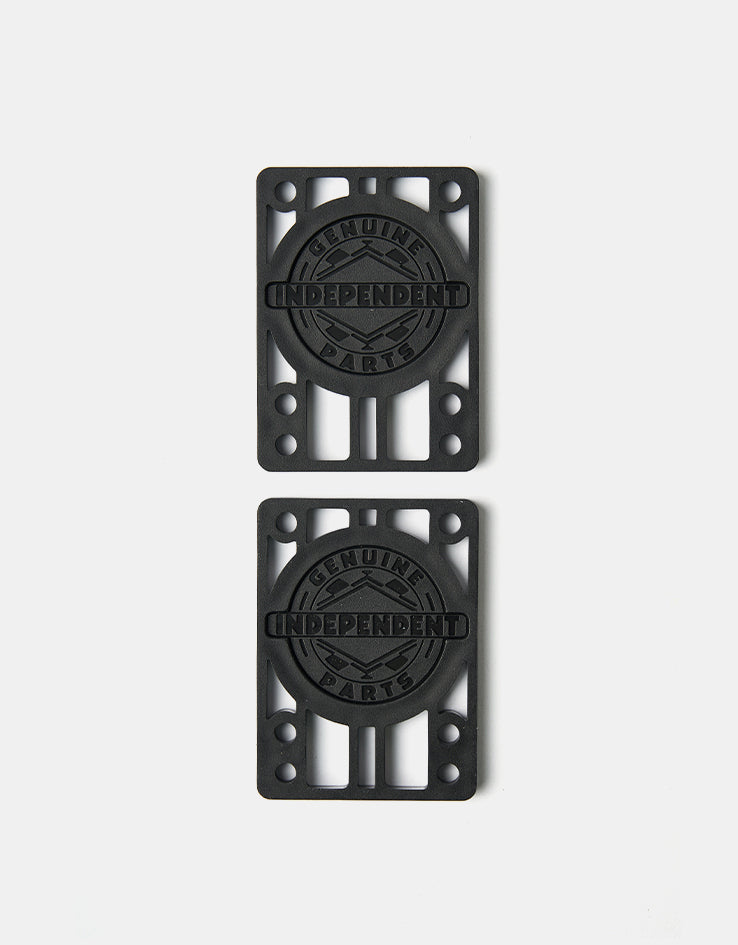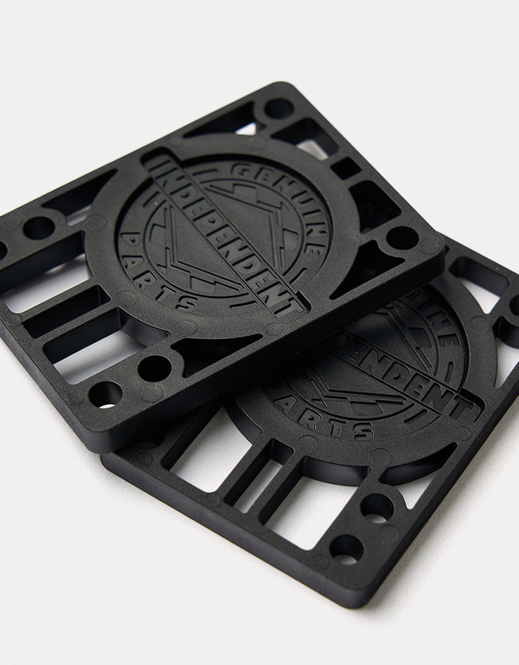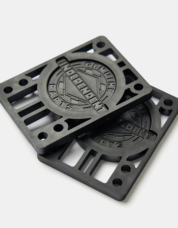 A rad set of 1/4" riser pads from the always on point design team at Independent, in black for a slick look and including a free Independent sticker! These riser pads will give you that little boost you need to pop extra high, just make sure you have bolts that are 1 ¼ inch or longer otherwise they may not fit on your rig.