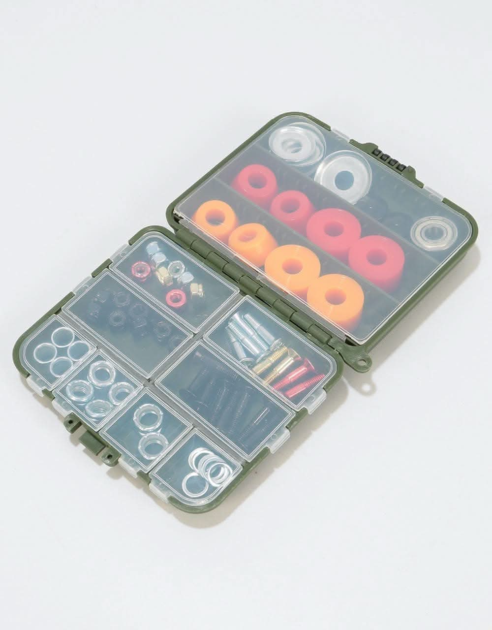 The Spare Parts Kit from Indy has everything you will ever need if you find yourself caught off guard when out skating. This kit has anything you would ever need to replace. From bolts to bushing, washers, and everything in between, this kit has you covered.