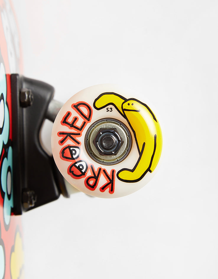 The Krooked OG Sweatpants Complete Skateboard comes fully set up and ready to skate. The 7.3" deck depicting a strutting man surrounded by flowers comes full equipped with raw/black trucks and 53mm Krooked wheels, making it the perfect set up for those just starting out or wanting an upgrade on their current setup.
