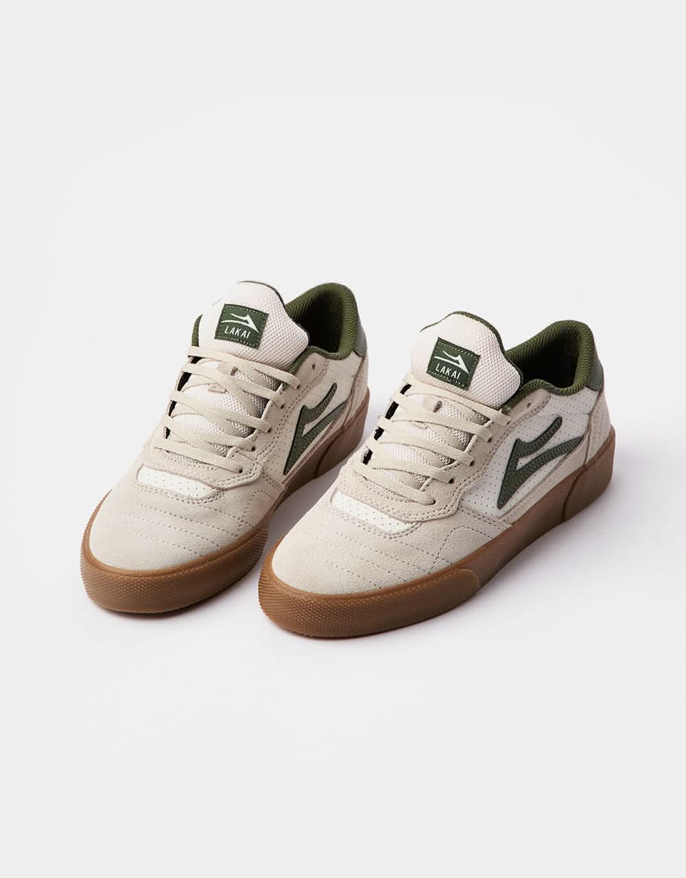 The Lakai Cambridge Skate Shoes in Cream Suede feature a PARA-MOUNT™ outsole that has been described as their most advanced vulcanised construction to date and a suede/mesh/perforated leather upper with bold branding and clean lines. Finished off with a DELUX-LITE™ footbed for supreme comfort. A clean, effortless skate shoe with all the added details you'll need for days on end skating.