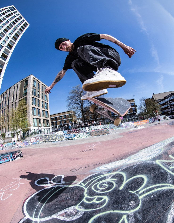 Digging deeper into the details and tech, the Air unit provides cushioning in the heel, whilst keeping crucial forefoot flexibility, and a revised toe profile and stitch-turned seams bring flick and durability to the party. Underfoot, a modified herringbone tread pattern gives optimal grip and flexibility, and reinforced padded tongue, internal sit straps and fit pods in the collar lining allow skaters to feel secure and comfy on their board.