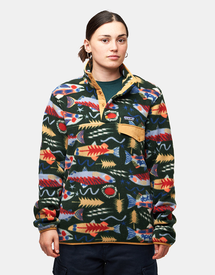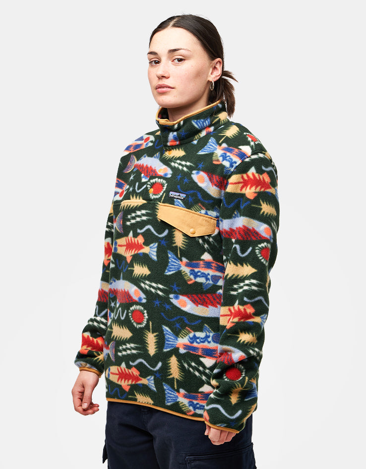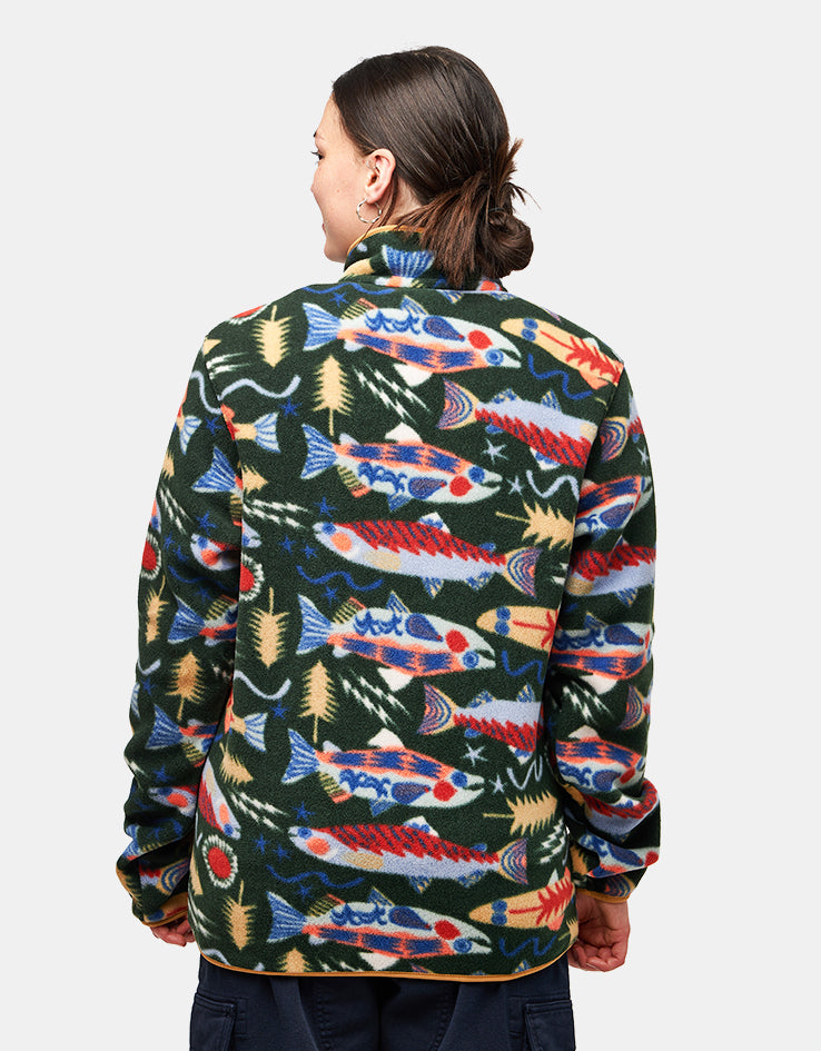 Patagonia Lightweight Synch Snap-T Pullover Fleece - Salmon Energy/Old Growth Green
