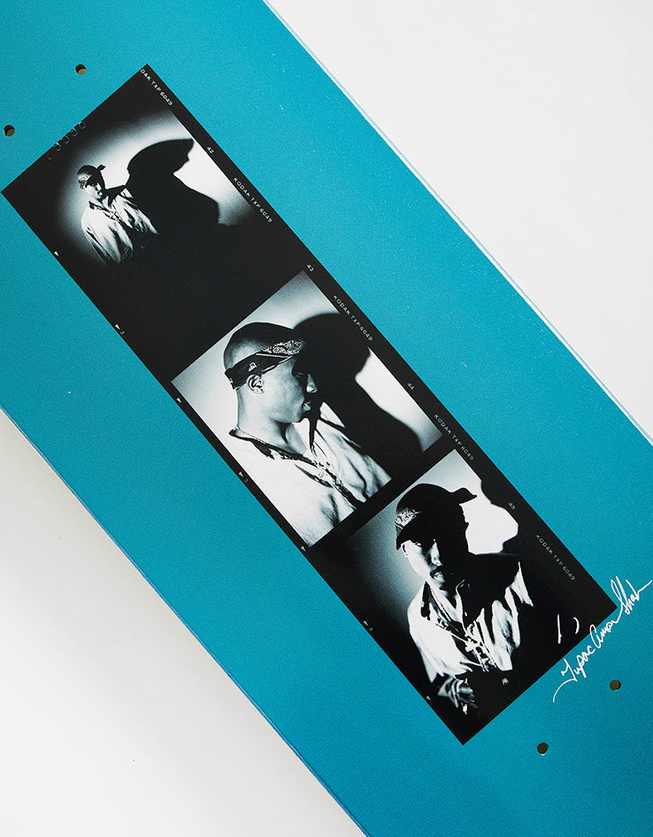 The Primitive x 2Pac collection delivers with the Shadows deck, featuring images of Pac at the centre and a handwritten note at the nose.