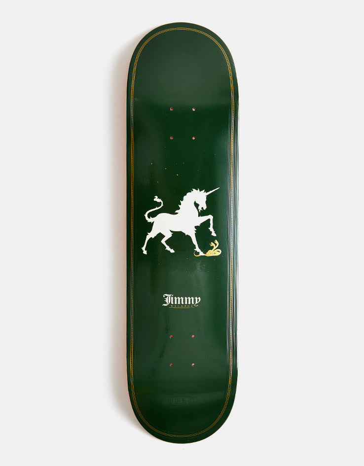 Keepin’ it real with Real skateboards. A whole load of new wood lands from Real just in time for Christmas, with models for their stacked crew of pros. The Real Wilkins Unicorn Skateboard Deck is a pro model for Jimmy Wilkins coming in at 8.38" wide. The deck features a white silhouette of a unicorn attacking a couple of snakes on a deep green background.
