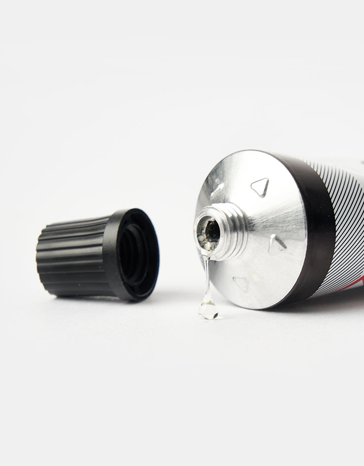 Ripcare shoe repair kit in clear, suitable for leather, rubber, vinyl and canvas shoes. Reinforces and fixes stressed or blown out areas in shoes. Water-repellent elastic formula created by skateboarders, for skateboarders, and made in Germany.