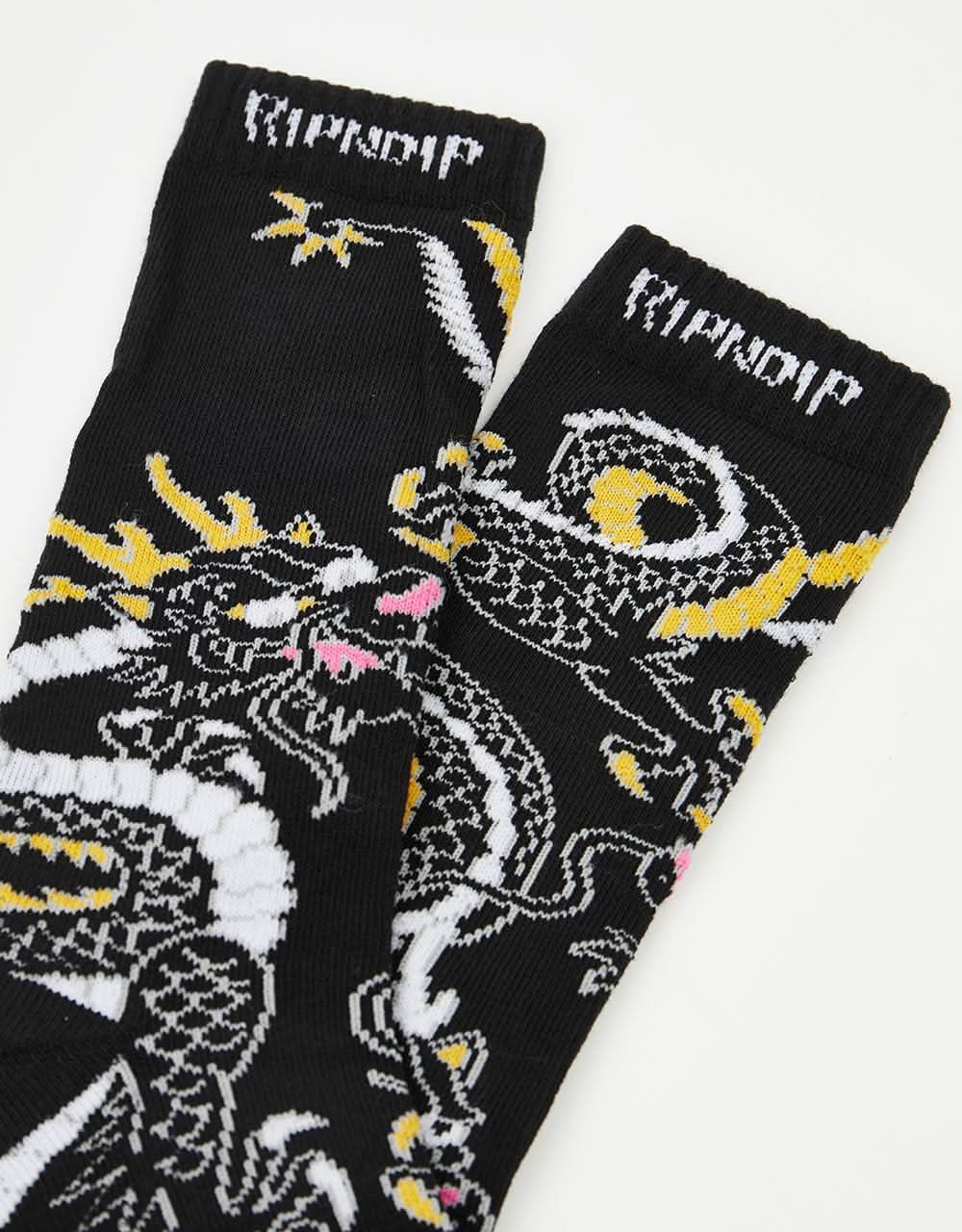 Introducing the RIPNDIP Ryu Socks in sleek black. These socks are not your average pair, they are designed to make a statement and add a touch of edginess to any outfit.