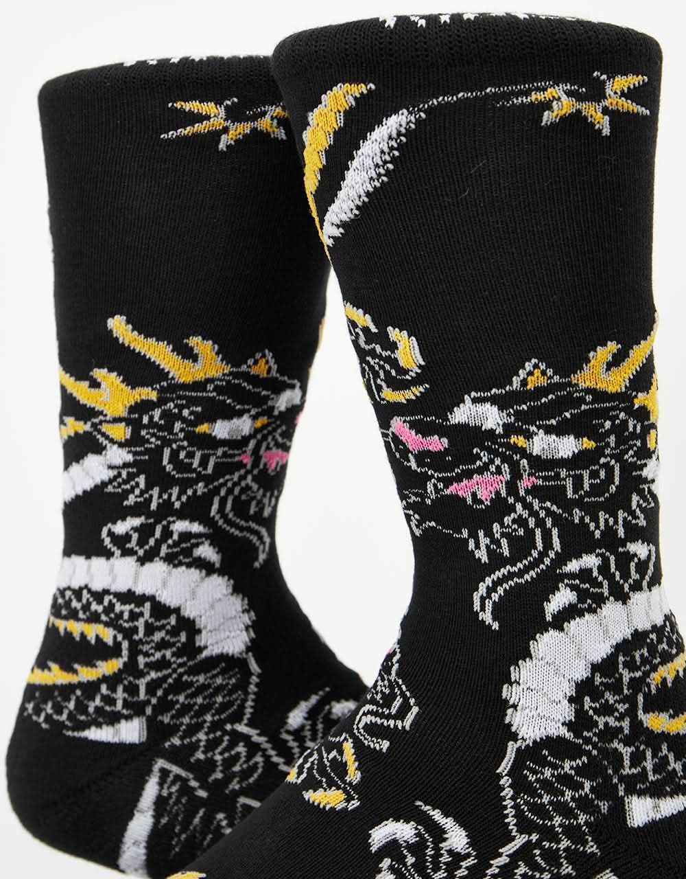 Crafted from a soft and comfortable cotton blend, these socks feature a bold graphic of a fierce dragon. The dragon is intricately detailed with vibrant colours and adds a pop of personality to the overall design.