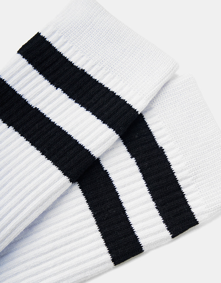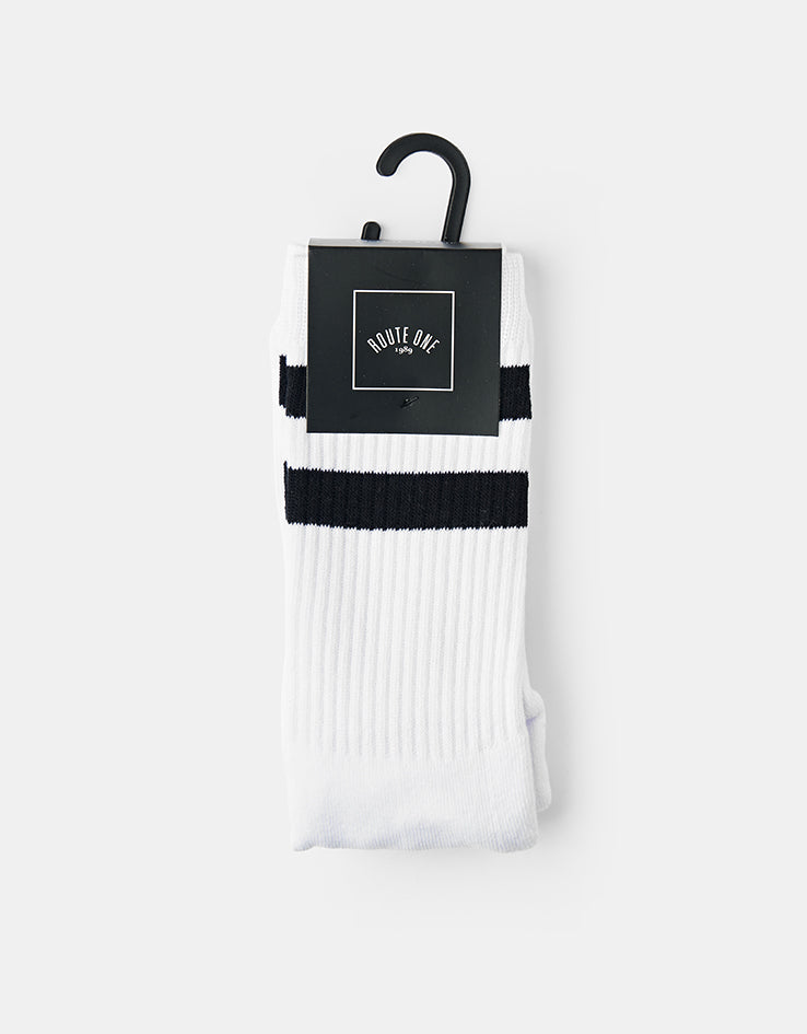 The Route One Classic Crew Socks in White/Black have been constructed from a premium, heavyweight cotton/polyamide blend with a touch of elastane for comfort and subtle stretch. Complete with a ribbed ankle, jacquard print details and a cushioned foot bed. At such an affordable price, you really cannot go wrong.