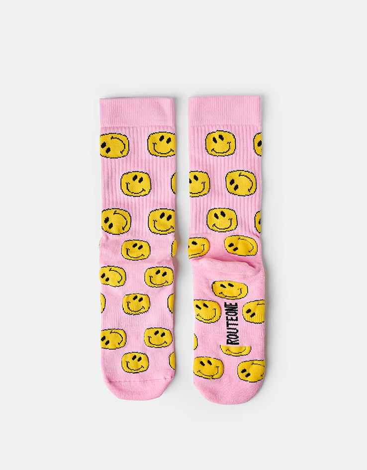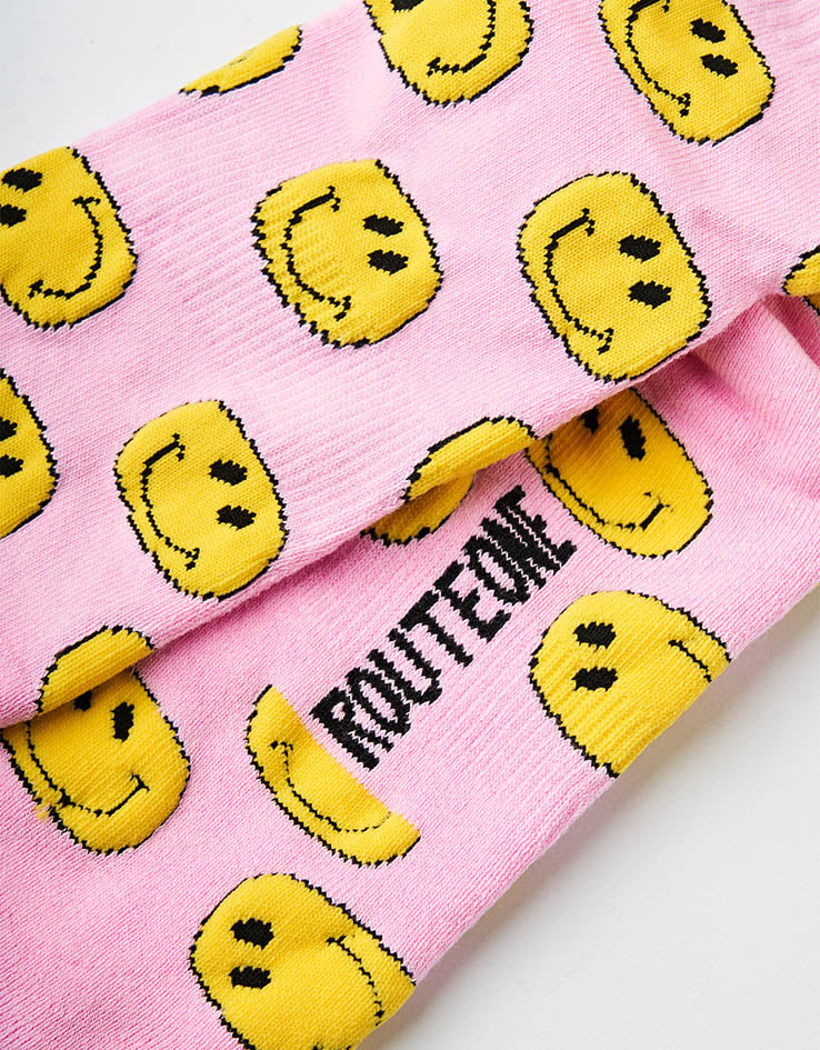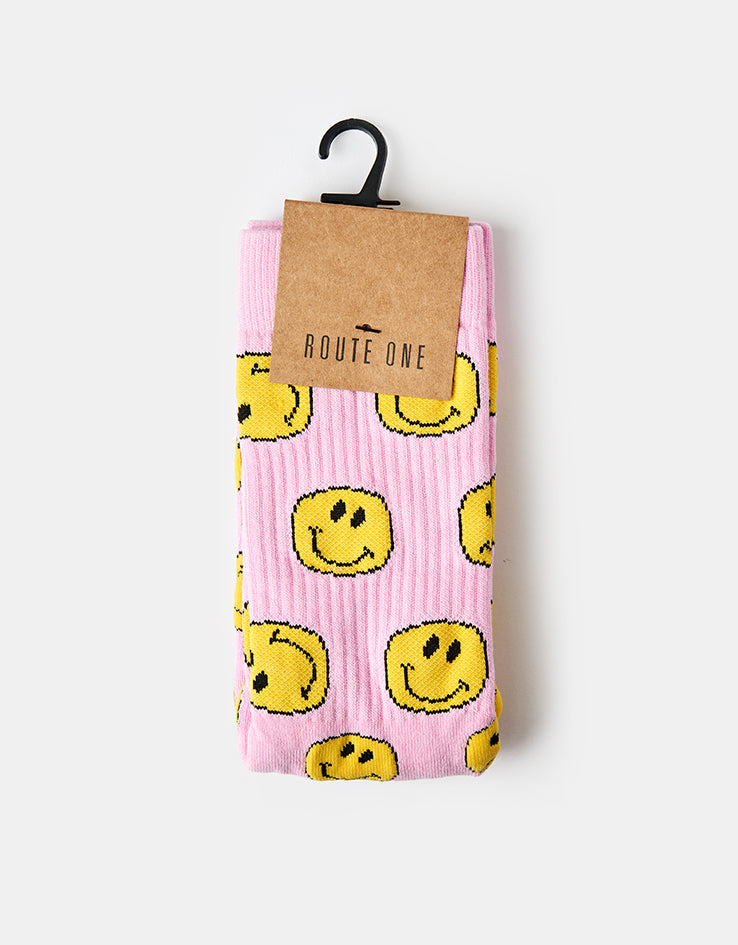 Route One Smile Crew Socks - Light Pink