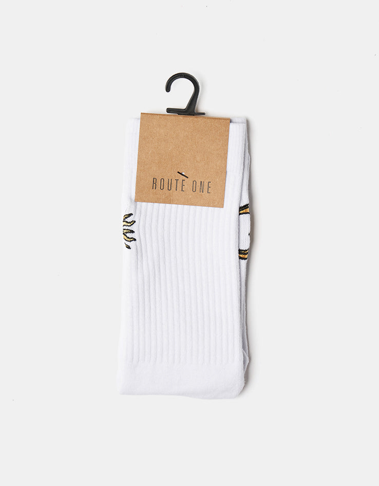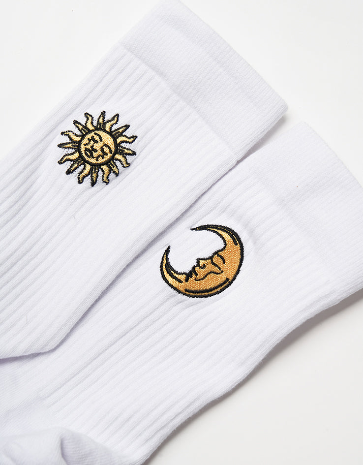 The Route One Sun & Moon Socks in Multi are made from a comfy cotton/poly blend with a 2% elastane for added stretch. The embroidery design has been designed by our graphics team in house here at Route One. The socks feature a thick bouncy sole for extra cushioning.