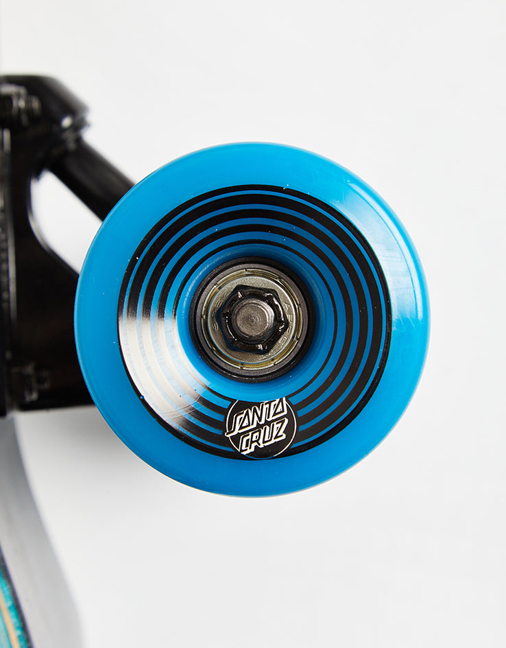 The Santa Cruz Botanic Skull Drop Down Longboard comes in at 9.5" wide and features classic printed Santa Cruz graphics in vibrant colour for a distinctive look when out bombing hills. It comes equipped with Bullet trucks and blue Santa Cruz branded Slime Balls wheels for a clean turn and smooth ride - the perfect setup to get you rolling and up to speed.