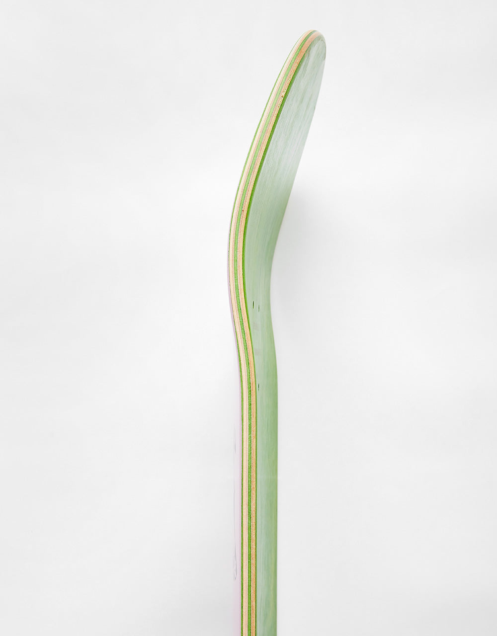 Skateboard Café's Pooch Series is designed by artist Witchgatherer. The "Norma" deck features Skateboard Café's canine pal, Norma, in Bristol tattoo artist, Witchgatherer's, distinct stylings on a pink background. The graphic is printed on Café's classic shape which has a medium concave.