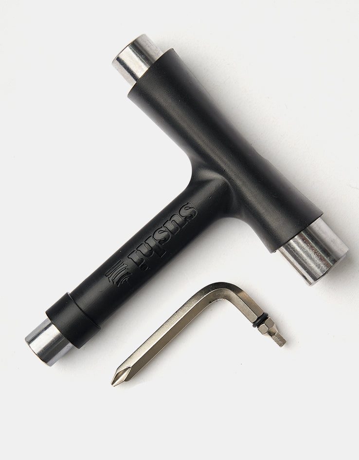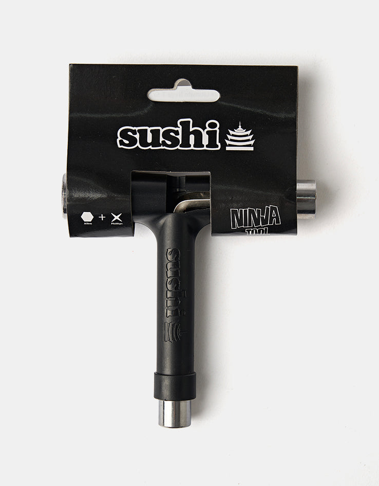 Excellent value skate tool from Sushi Skateboards, the Sushi Ultimate Ninja T Skate Tool comes in black and has all you need for easy assembly of a skateboard. With allen/phillips compatiblity and three different wrench sizes for truck bolts, wheel nuts and kingpins, the Ultimate Ninja Tool has everything you could want, and at a very reasonable price.