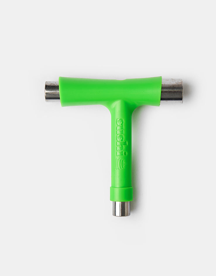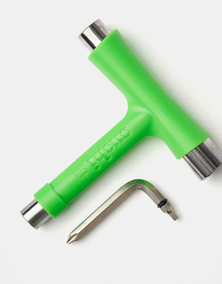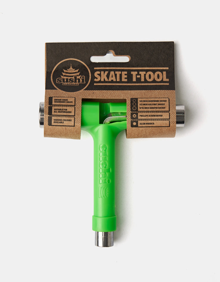 Excellent value skate tool from Sushi Skateboards, the Sushi Ultimate Ninja T Skate Tool comes in green and has all you need for easy assembly of a skateboard. With allen/phillips compatiblity and three different wrench sizes for truck bolts, wheel nuts and kingpins, the Ultimate Ninja Tool has everything you could want, and at a very reasonable price.