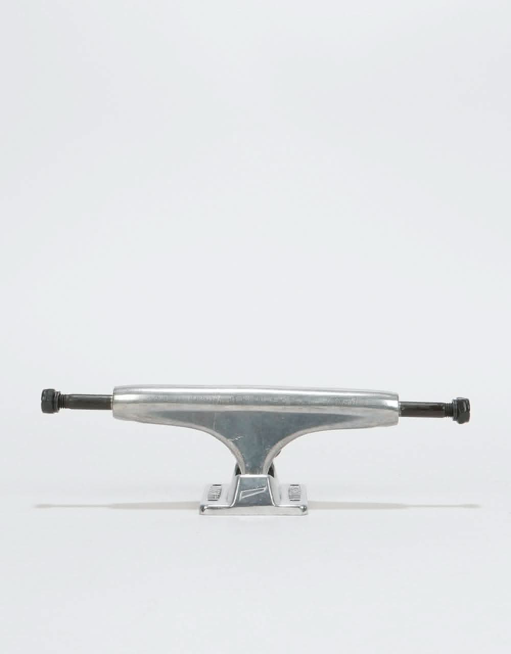 The Tensor Alloys 5.5 Team Trucks are a solid pair of trucks with a lightweight alloy frame, from a consistently reliable and iconic brand. Designed to fit decks between 8.25" and 8.5" wide, they have an 8.5" axle length and come in a polished colourway with classic Tensor branding in all the right places. A strong and durable pair of lightweight alloy trucks with a smooth turning circle from Tensor that are built for all kinds of skateboarding.
