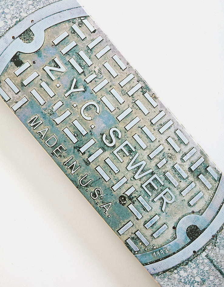 The Zoo York ZYC sewer board features an image of a New York manhole cover with Zoo York replacing the standard New Your City branding.